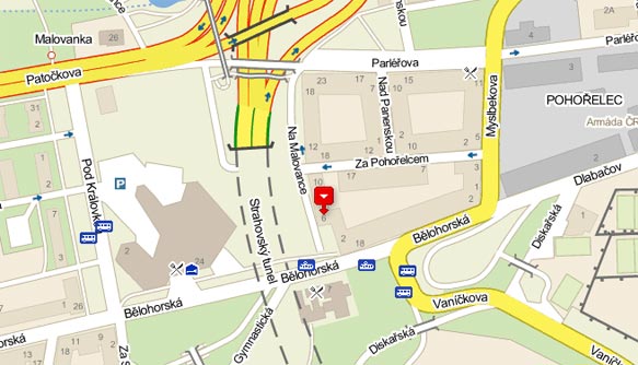 Prodejna je snadno dostupná autem i MHD. Leží přímo proti tramvajové zastávce Malovanka (tram 22, 25, bus 143). Autem se do ulice Na Malovance dostanete nejlépe z ulice Myslbekovy přes ulici Za Pohořelcem. Před prodejnou vždy rychle najdete místo na rychlé zaparkování.